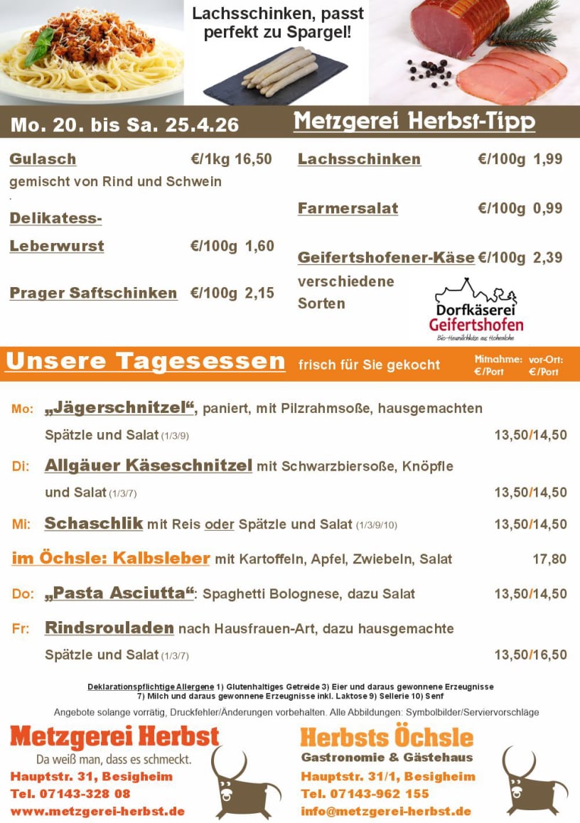 Zu folgenden Zeiten haben wir in der Metzgerei für Sie geöffnet: